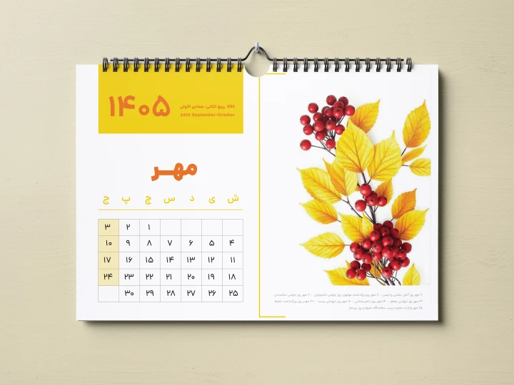 در طراحی این تقویم از المانهای وکتور باکیفیت و استاندارد چاپ استفاده شده و تمام جزئیات مهم مثل رنگبندی اصولی، حاشیه امن، سایزبندی دقیق، فونتها و چیدمان حرفهای کاملاً رعایت شده؛ بنابراین بدون دغدغه میتونی برای چاپ نهایی آمادهاش کنی.