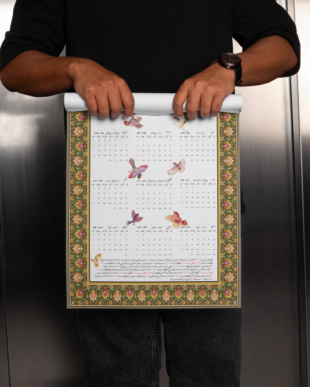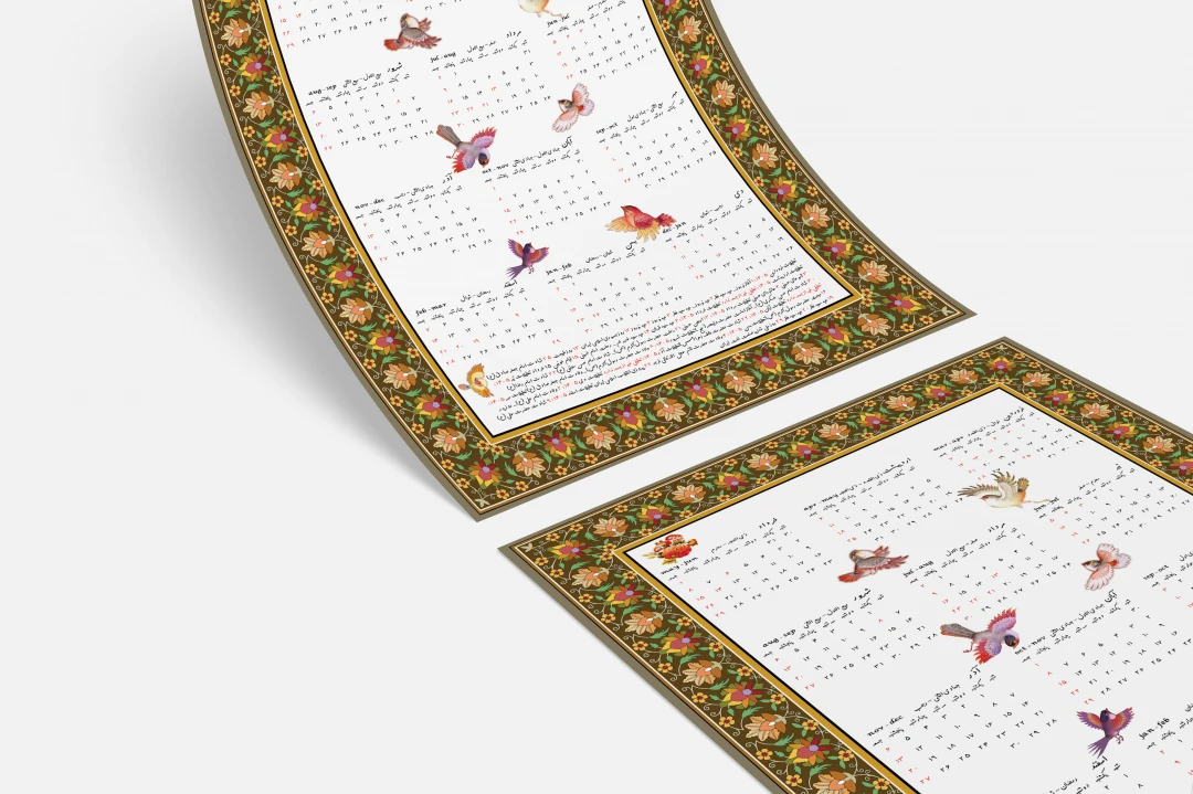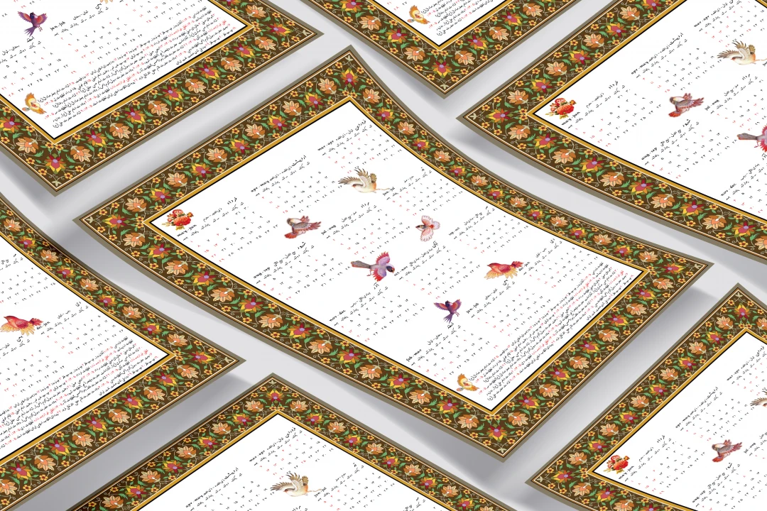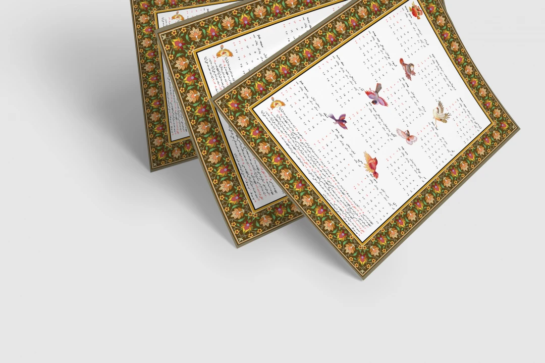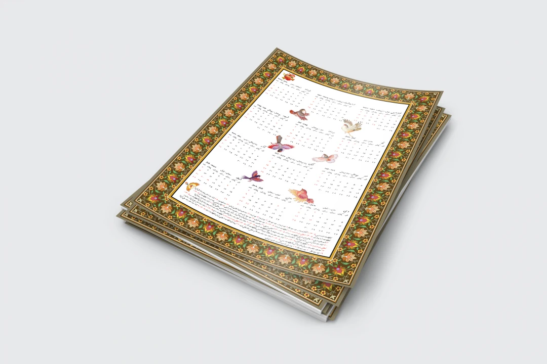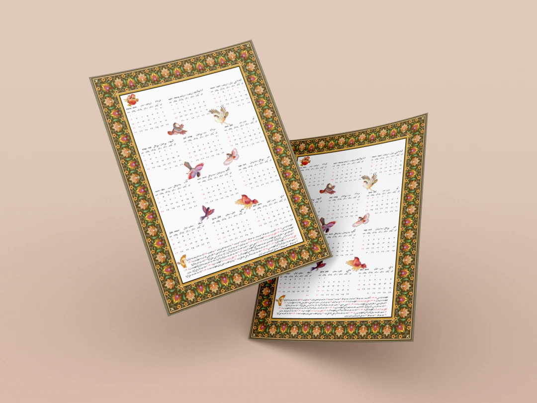 تقویم دیواری 1405 طرح سنتی گل و مرغ کد 0284