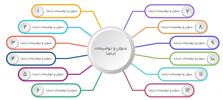 دو فایل طرح اینفوگرافیک 6 و 12 گانه (قابل کاهش و افزایش) لایه باز فتوشاپ psd با رزولوشن 300 به همراه فایل طراحی ایلاستریتور