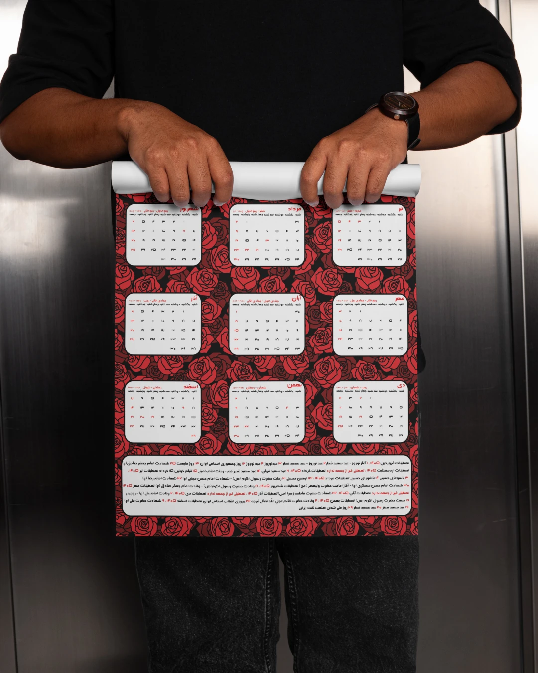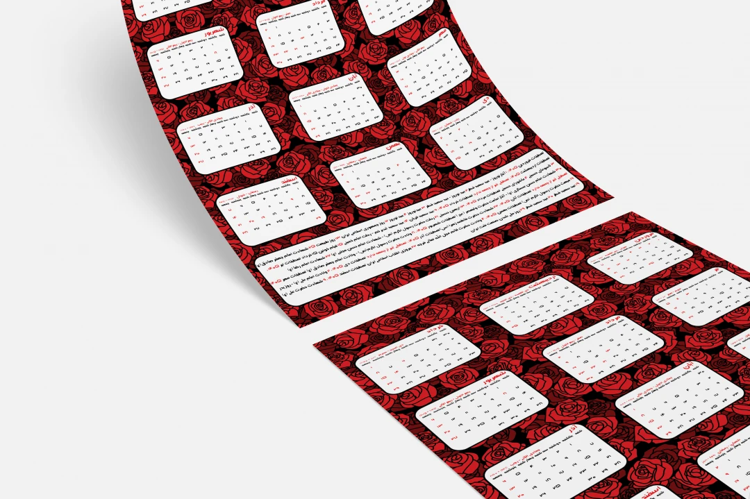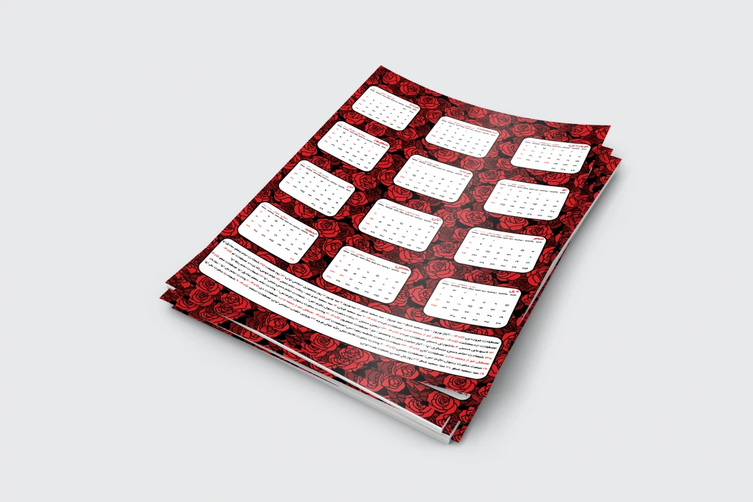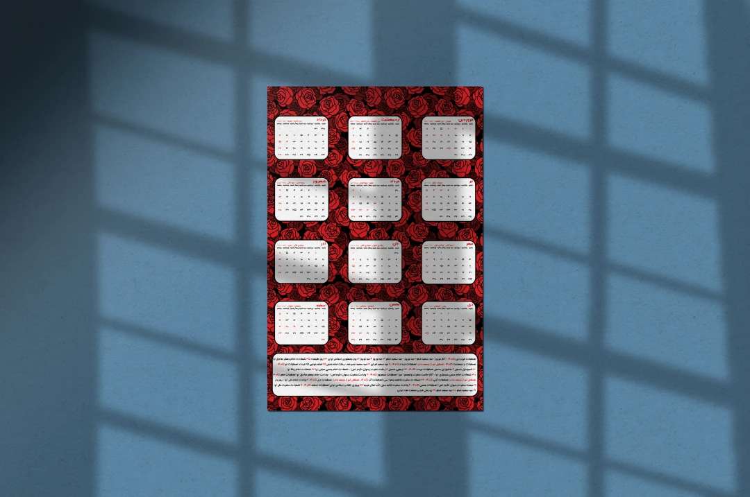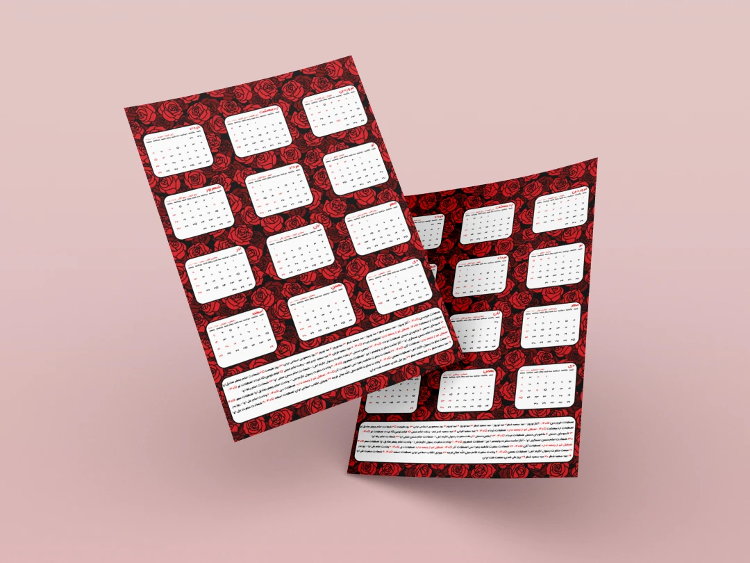 تقویم سال ۱۴۰۵ الگو گرفته از تقویم رسمی منتشر شده توسط شورای مرکز تقويم مؤسسۀ ژئوفيزيك دانشگاه تهران بوده و در صورت وجود اشکال مسئولیتی بر عهده طراح نمیباشد . فایل pdf تقویم در فایل قرار داده شده و خریدار میتواند طرح را با آن چک و مطابقت داده و اقدام به چاپ کند .