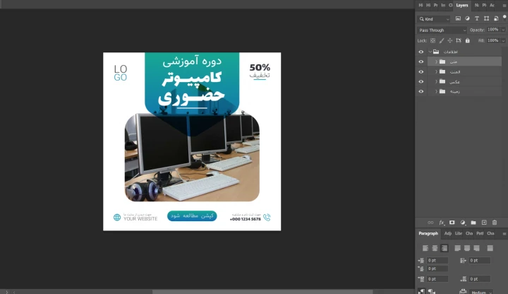 قالب لایه باز پریمیوم پست اینستاگرام کمپین فروش دوره psd