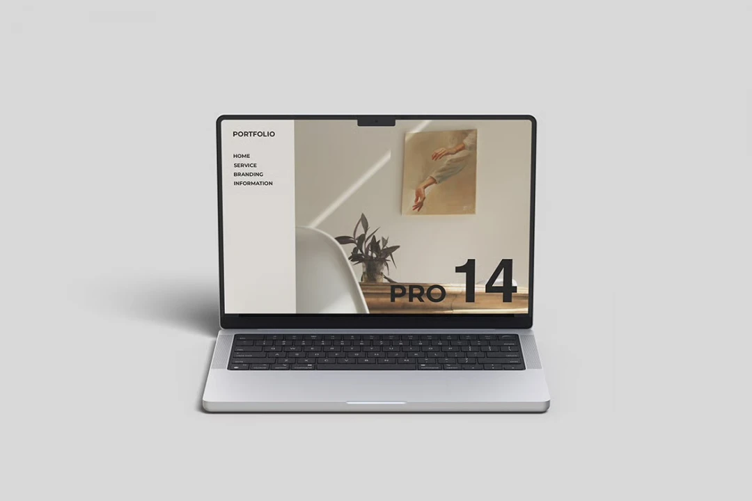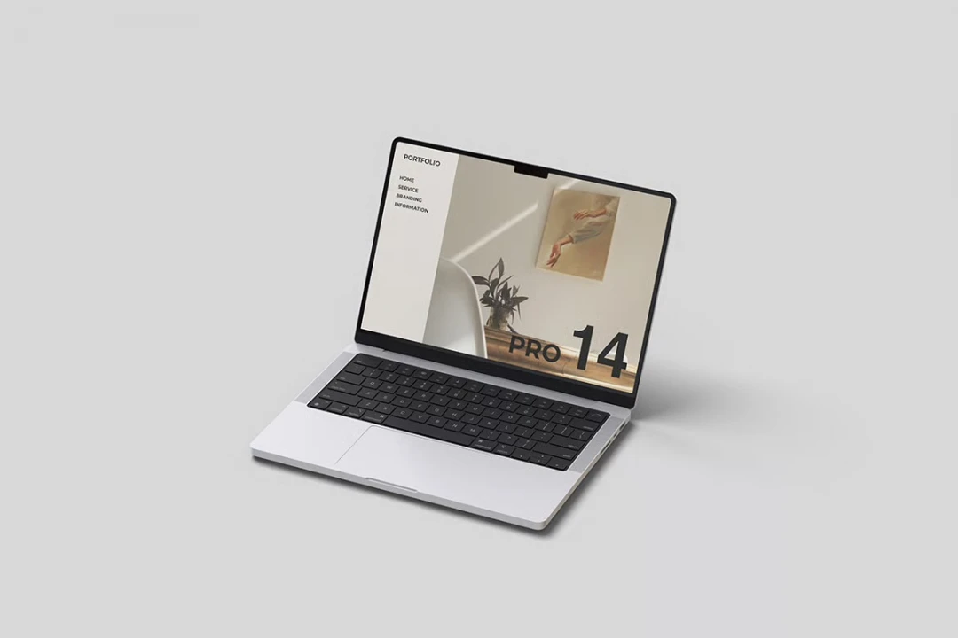 موکاپ لایه باز مکبوک پرو ۱۴ اینچ، با طراحی واقعگرایانه (Realistic) و جزئیات دقیق، بهترین انتخاب برای طراحان گرافیک و توسعهدهندگان وب است تا پروژههای خود را با استانداردهای جهانی به مشتریان نمایش دهند.