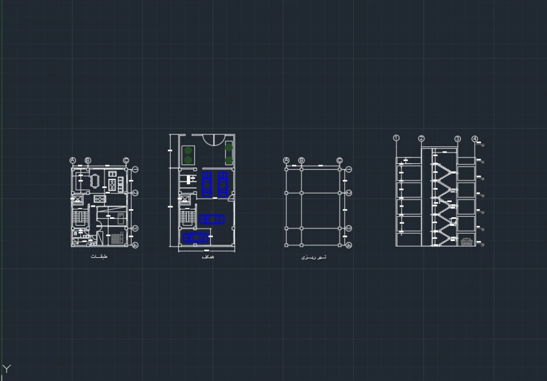 شامل پلان طبقات، پارکینگ، تیرریزی و ستون گذاری، برش راه پله